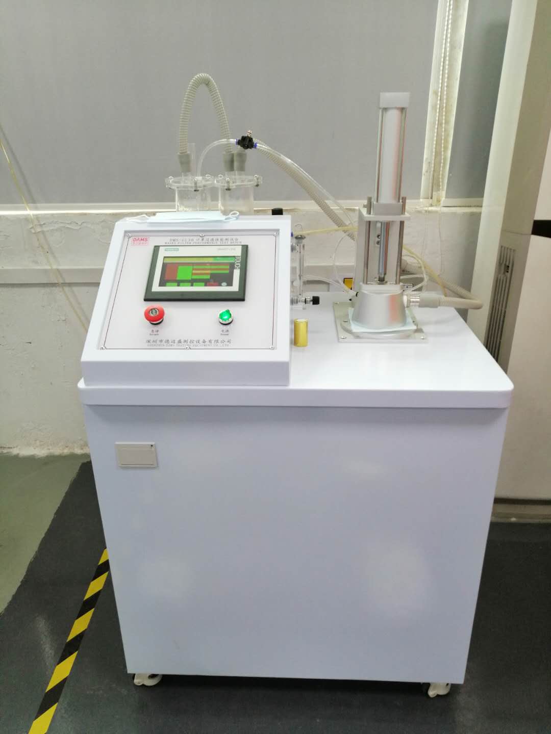 檢測原理:一定濃度及粒徑分布的氣溶膠,以規定的氣體流量通過口罩罩體,氣溶膠通過口罩罩體后,顆粒物濃度減少量的百分比來評價過濾效率。