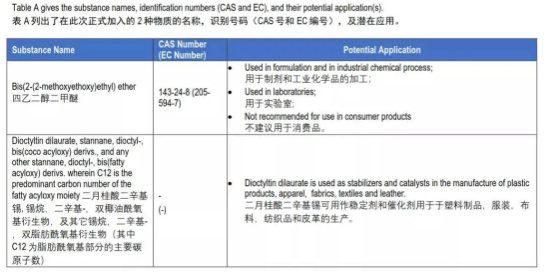 新增SVHC候選物質(zhì)見(jiàn)下表