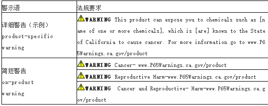 加州65號(hào)提案現(xiàn)行警告標(biāo)識(shí)要求
