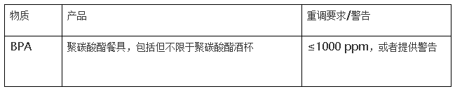 2017年2月,一項要求重調聚碳酸酯餐具中BPA要求的Prop 65協議訂立。作為備選,該協議也允許使用Prop 65標簽。