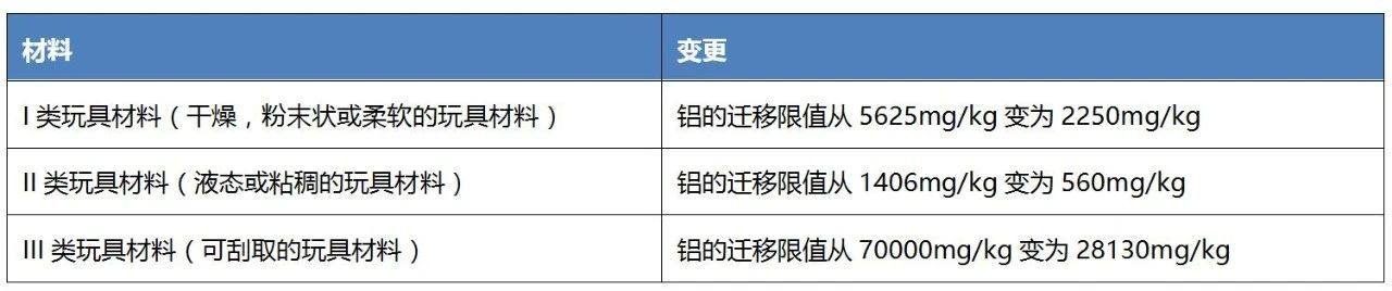 對比前一版本,本次主要修訂了鋁元素的遷移限值,詳見如下