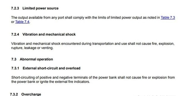 4. 其它有更新或增加的測試要求: 限制功率測試,振動和機械沖擊測試,元器件和接觸面溫度限制,短路和過載測試,過充電測試等。